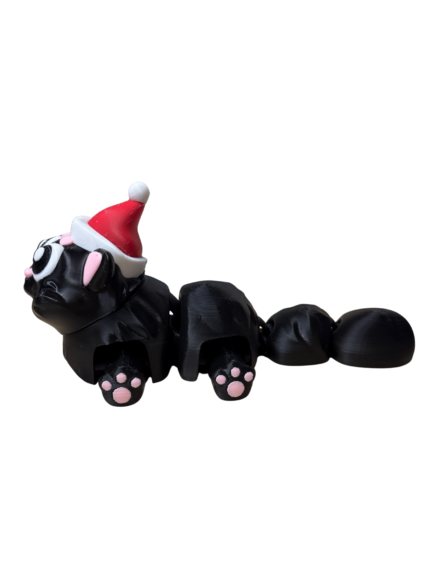 Meet your new festive friend! This adorable 3D-printed cat rocks a cheerful Santa hat, bringing holiday cheer to any space. Perfect for cat lovers and seasonal decorators alike, this charming little companion captures all the cuteness of the season. Whether displayed on a shelf, desk, or gifted to a fellow feline enthusiast, it's a delightful way to spread joy and merriment throughout the holidays.