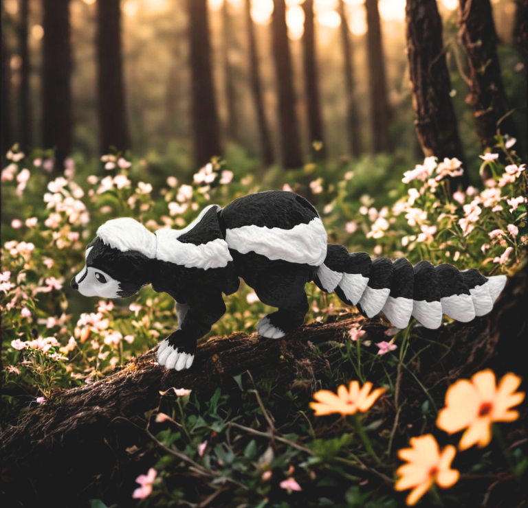 Bring home a playful companion with this adorable 3D printed skunk! Its articulated design lets you pose and play, making it a charming addition to any collection or a delightful gift. Cute, quirky, and full of character, this little skunk is sure to spark smiles and fun wherever it goes.