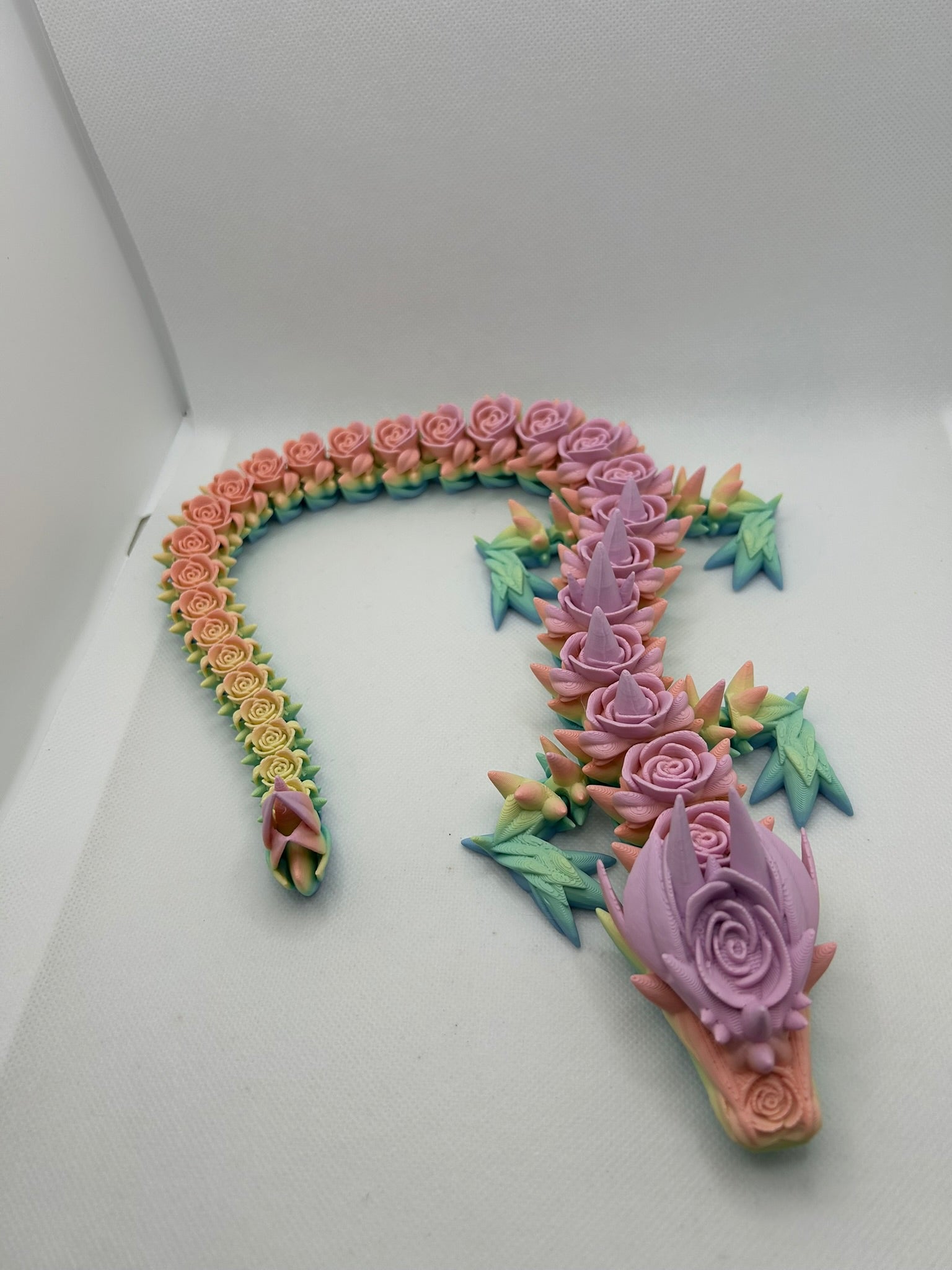 Introducing the Rose Dragon, the perfect addition to your home or maybe even your garden! This unique dragon features intricate rose designs, adding a touch of whimsy to any space. Bring a little magic into your life with the Rose Dragon.